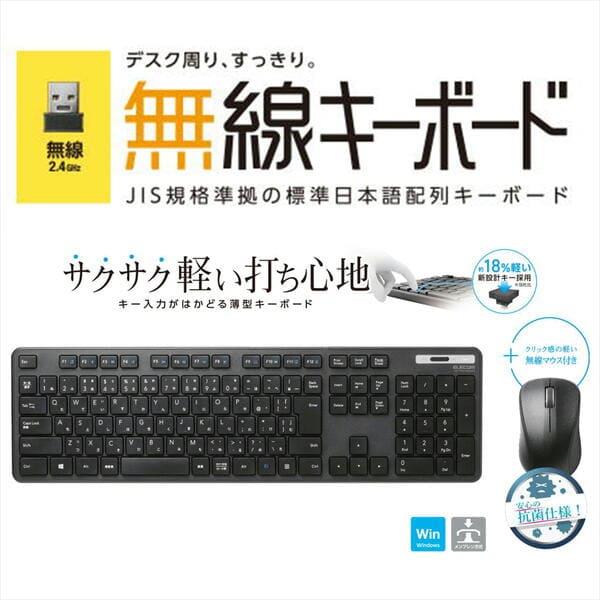 ELECOM キーボード ワイヤレス マウス付 無線 USB 抗菌 薄型 フルキーボード ワイヤレスキーボード メンブレン式 TK-FDM110MKBK