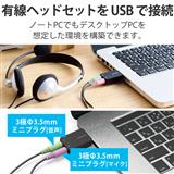 ステレオミニプラグのヘッドセットをUSB端子に接続できる変換アダプタです。