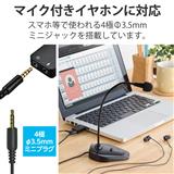■ヘッドホン端子とマイク端子が分離した従来のパソコン用ヘッドセットに加え、スマホ用4極φ3.5mmミニプラグ(CTIA規格)のマイク付きイヤホンにも対応しています。
