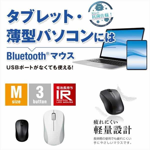 ELECOM ワイヤレスマウス Bluetooth 3ボタン 抗菌 軽量 IR LED Mサイズ ホワイト M-BY11BRKWH