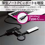 有線LANポートが無く、USBポートも不足しがちな薄型のType-C(TM)搭載パソコンに最適!挿すだけで使えるUSB3.2 LANアダプター USBハブ付。