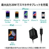 ELECOM USB Type-C 充電器 PD対応 20W ライトニングケーブル一体型 1.5m スイングプラグ 小型 軽量 ブラック MPA-ACLP05BK