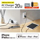Lightningコネクターを搭載し、Lightningコネクター搭載のiPhone、iPad、iPodを超高速充電できるUSB AC充電器です。