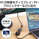 ■USB Type-C(TM)コネクターを搭載した機器の映像信号を変換し、VGA(D-sub15pin)入力コネクターを搭載したディスプレイ・テレビ・プロジェクターなどに出力することができる映像変換アダプターです。