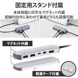 全てのポートを本体1面に搭載し、両面テープでデスクに固定できるスタンド付きのため、ピタッと固定し、すっきり使用できます。