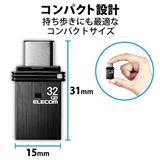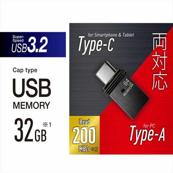 ELECOM USBメモリ 32GB USB3.2(Gen1) 3.1(Gen1) 3.0 2.0 2in1 Type-C USB A キャップ式 ブラック MF-CAU32032GBK