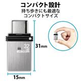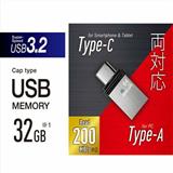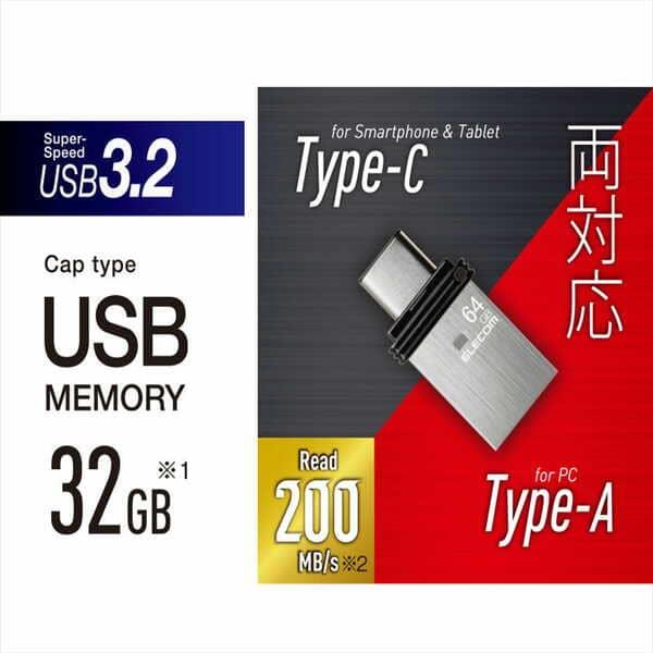 ELECOM USBメモリ 32GB USB3.2(Gen1) 3.1(Gen1) 3.0 2.0 2in1 Type-C USB A キャップ式 シルバー MF-CAU32032GSV