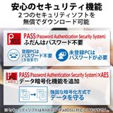 ■「PASS(Password Authentication Security System)×AES」使用時に保存されたデータは、信頼性の高い強固な暗号化方式「AES256bit」で暗号化されるので、万一の紛失や盗難でも大切なデータの情報流出を防止します。