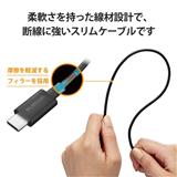 柔軟さを持った線材設計で断線に強く、取り回しがしやすいため束ねて持ち歩くのに便利な、やわらか耐久ケーブルです。