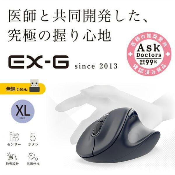 ELECOM ワイヤレスマウス 静音 無線 2.4GHz 5ボタン 右手専用 抗菌 XLサイズ EX-G ブラック M-XGXL30DBSKBK