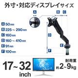 ■17~32インチサイズのモニターに対応するガススプリング式のシングルモニターアームです。