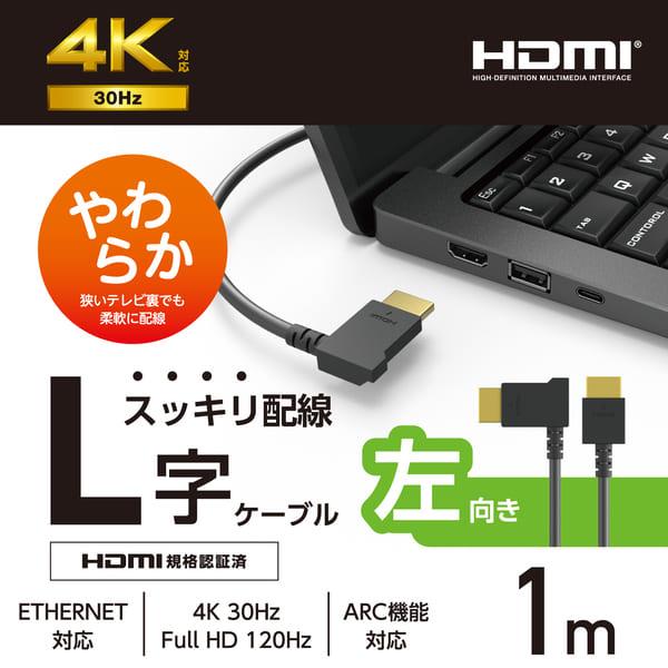 ELECOM HDMI ケーブル HIGH SPEED with Ethernet L字 左向き 1m 4K 30Hz やわらか RoHS指令準拠 ブラック CAC-HD14EYL10BK