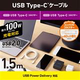 最大100WのUSB Power Deliveryに対応したUSB2.0 Type-C(TM)ケーブルです。
