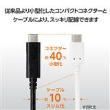 ■従来品より約40%小型化(同メーカー製品での比較)したコンパクトコネクターと、従来品より約10%スリム化(同メーカー製品での比較)したケーブルによりスッキリ配線できます。