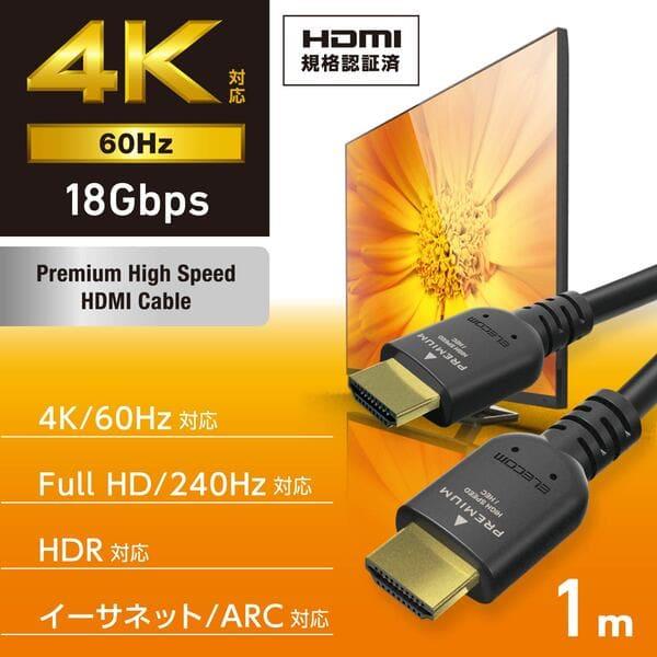 ELECOM HDMIケーブル 1m プレミアムハイスピード 4K 60Hz HEC ARC タイプA・19ピン - タイプA・19ピン ブラック CAC-HDP10BK2