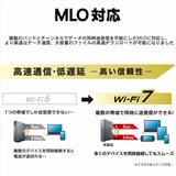 | その他無線機能 | MACアドレスフィルタリング(最大60エントリー)、SSID通知のON/OFF、マルチSSID設定、自動チャンネル設定(オートチャンネル)、送信出力制限、WPS、WMM、Wi-Fi設定コピー、バンドステアリング、MLO(2.4GHz、5GHz)、Multi-RU、Preamble Puncturing、TWT |