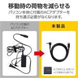 ■パソコン本体に付属のACアダプターを持ち運ぶ必要がなくなり、移動の際の荷物を減らせます。出張やテレワークの際のパソコンの充電にぴったりです。