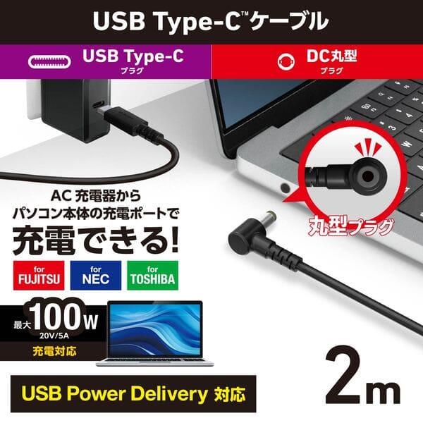ELECOM ノートパソコン充電ケーブル 2m PD 100W Type-C to DC丸型プラグ 5.5 2.5mm 東芝 富士通 NEC 各種対応 ブラック DC-PDFE20BK