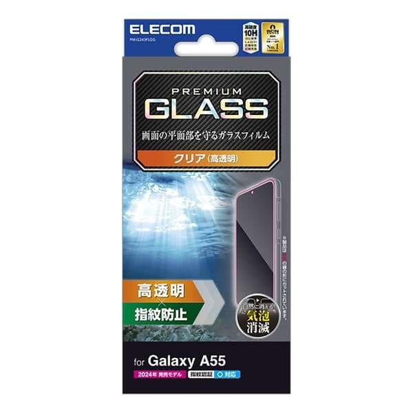 ELECOM Galaxy A55 5G(SC-53E) ガラスフィルム 指紋認証対応 高透明 表面硬度10H 指紋防止 飛散防止 気泡防止 PM-G243FLGG