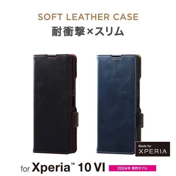 ELECOM Xperia 10 VI SO-52E ケース レザー 手帳型 マグネット 衝撃吸収 ストラップホール付 スタンド機能付 ブラック PM-X241PLFYBK