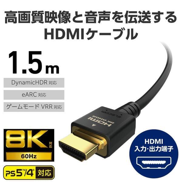 ELECOM HDMI 2.1 ケーブル ウルトラハイスピード 1.5m 8K 60Hz 4K 120Hz eARC VRR Dynamic HDR イーサネット ブラック CAC-HD21E15BK2
