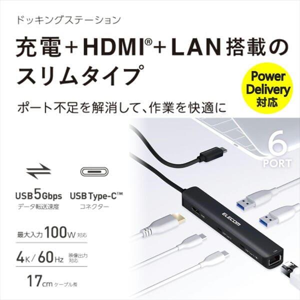 ELECOM USB TypeC ドッキングステーション ハブ 6-in-1 PD 85W出力 急速充電 USB-C×2 USB-A×2 HDMI×1 RJ45×1 ブラック DST-C30BK