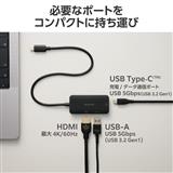 ■USB Type-C(TM)プラグでパソコンに接続し、パソコンを充電しながらUSB 5Gbps(USB3.2(Gen1))機器やHDMI(R)ケーブルを接続できるドッキングステーションです。
