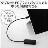 ■ケーブルは紛失の心配がない直付けタイプです。タブレットPC/2in1パソコンでもゆったり接続できるケーブル長約30cmです。