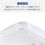 側面には弾力性のあるTPU(熱可塑性ポリウレタン)素材を、背面には強じんで透明度の高いポリカーボネート素材を使用した、スリムなスタイルのハイブリッドケースです。