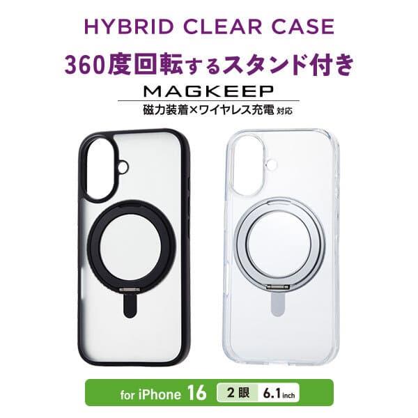 ELECOM iPhone 16 ケース ハイブリッド 衝撃吸収 カメラレンズ保護設計 磁力吸着ワイヤレス充電対応 スタンド機能付 グレー PM-A24AMAGSTGY