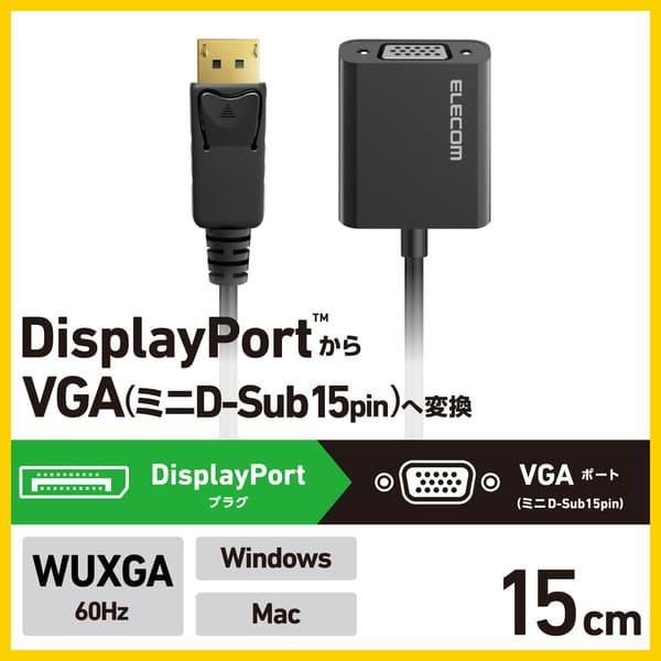 ELECOM DisplayPort - VGA 変換アダプタ DPプラグ to ミニD-Sub15pinポート 最大解像度1920×1200px ブラック AD-DPVGABK2
