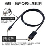 パソコンやスマートフォンなどの映像をディスプレイなどに出力できる、USB Type-C(TM)ポートをDisplayPort(TM)プラグに変換するケーブルです。