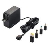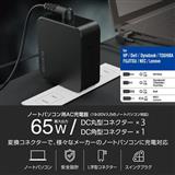 さまざまなノートパソコンの充電をこれ1台で!コネクターを交換するだけで異なるメーカーのノートパソコンを充電できる、65W出力ケーブル一体型ACアダプターです。