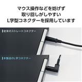 ■接続時に横に飛び出さない形状で、マウス操作などを妨げず取り回しがしやすいL字型コネクターです。