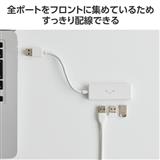 ■すべてのポートをフロントに集めて配置。同じ方向から接続できるため、デスクまわりの幅を取らずすっきり配線できます。