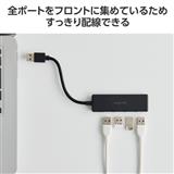 ■すべてのポートをフロントに集めて配置。同じ方向から接続できるため、デスクまわりの幅を取らずすっきり配線できます。