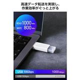 ■読み込み最大1000MB/s・書き込み最大800MB/sの高速データ転送を実現する、USB 10Gbps(USB3.2(Gen2))外付けポータブルSSDです。