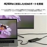 ■USB Type-C(TM)コネクターでパソコンに接続し、USB機器やHDMIディスプレイを接続できるドッキングステーションです。