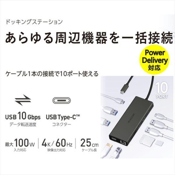 ELECOM USB Type-C ドッキングステーション 10-in-1 ハブ PD 85W出力 急速充電 ブラック DST-100BPBK