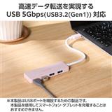 ELECOM Type-C ハブ USB3.2 Gen1 USB-A ×4 バスパワー 薄型 ケーブル長15cm ピンク U3HC-H040PN
