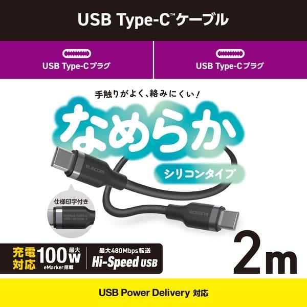 ELECOM USB Type-C ケーブル ( C to C ) 2m PD 100W 急速充電 シリコン素材 やわらかく絡みにくい ブラック MPA-CC5PSSA20BK