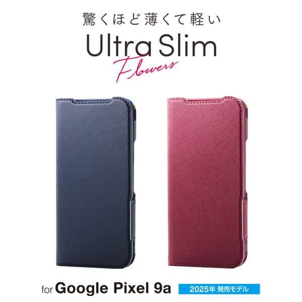 ELECOM Google Pixel 9a ケース レザー 手帳型 マグネット 衝撃吸収 超軽量 薄型 ワイヤレス充電可 花柄 ネイビー PM-P251PLFUJNV