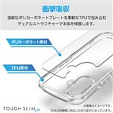 ■全周に配置した独自設計のエアークッションが衝撃を吸収し、側面に弾力性のあるTPU(熱可塑性ポリウレタン)素材を、背面に高硬度のポリカーボネート素材を使用した、端末のデザインが美しく際立つオールクリアタイプのTOUGH SLIM LITEケースです。