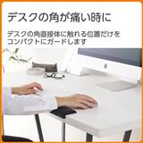 ■コーナーガードクッションがデスクの角をしっかり覆い、手首や腕が角に当たらない設計です。