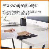 ■コーナーガードクッションがデスクの角をしっかり覆い、手首が角に当たらない設計です。