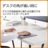 ■コーナーガードクッションがデスクの角をしっかり覆い、手首が角に当たらない設計です。