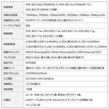 | 無線伝送速度[802.11ac](理論値) | IEEE 802.11ac:5GHz帯 最大1733Mbps、IEEE 802.11n:5GHz帯 最大300Mbps 2.4GHz帯 最大300Mbps |