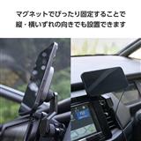 ■マグネットでスマートフォンをぴったり固定することで縦・横いずれの向きでも設置でき、スマートフォンのナビを使いながら充電できます。
