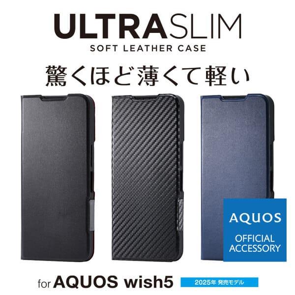 ELECOM AQUOS wish5 (SH-52F) ケース レザー 手帳型 マグネット 衝撃吸収 超軽量 薄型 スタンド機能付 ネイビー PM-S251PLFUNV