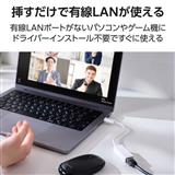 ■USB 5Gbps(USB3.2(Gen1))対応で、快速で安定したインターネット環境を実現。ドライバーのインストールが不要なので、LANアダプターを機器に接続するだけで有線LAN通信が可能になります。